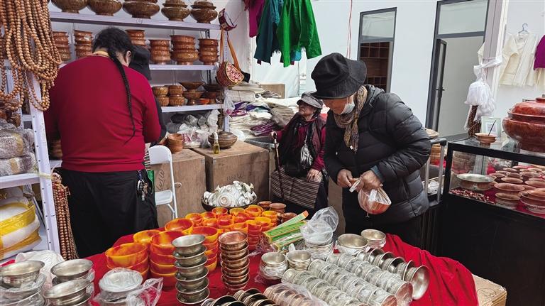 參展商們也在最后一天全力沖刺,來自不同地域、經(jīng)營不同品類商品的商家在展會(huì)上均收獲頗豐。來自尼泊爾的新白瑪塔西綜合商店老板拉魯,此次展銷會(huì)帶來了木碗、玉碗、銅碗等二十多類特色產(chǎn)品。他笑著表示:“銷量挺不錯(cuò)的,我們家的產(chǎn)品不僅品類豐富,價(jià)格也實(shí)惠。這已經(jīng)是我第八次來拉薩參加展銷會(huì)了,每次都能感受到拉薩消費(fèi)者的熱情,也收獲滿滿。”