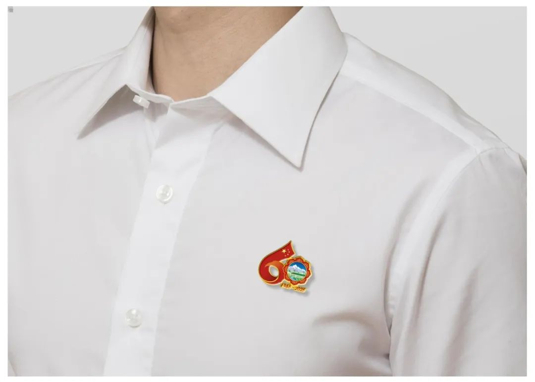 西藏自治區(qū)成立60周年慶?;顒踊諛?biāo)是由五星紅旗延展出的飄帶與格?;ò戥h(huán)構(gòu)成的數(shù)字“60”造型。飄揚的五星紅旗象征著繁榮昌盛的祖國母親對西藏的關(guān)懷與呵護(hù),使西藏在砥礪奮進(jìn)的60年中綻放出燦爛的格?;ǘ?。西藏復(fù)興號、現(xiàn)代化新農(nóng)村、風(fēng)力發(fā)電、雪山、藏羚羊等代表了60年來西藏社會主義現(xiàn)代化建設(shè)取得的豐碩成果?!?965-2025”代表西藏自治區(qū)成立60周年。標(biāo)識兼具中華民族精神與西藏歷史底蘊,整體色彩使用了國旗紅,營造出喜慶、熱烈、祥和的氛圍。