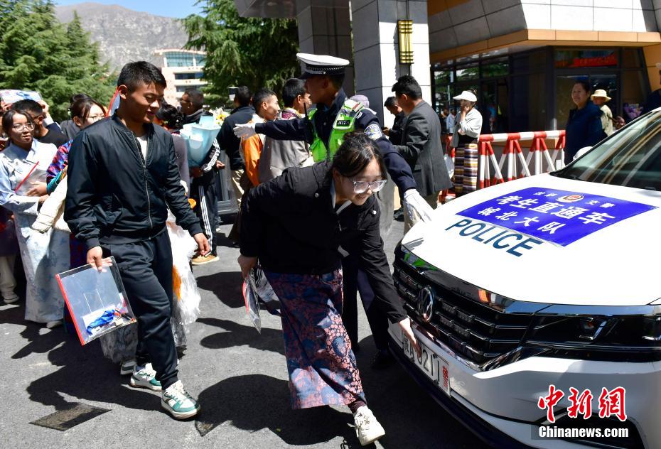 6月9日,西藏拉薩江蘇實驗中學考點外親友為考生送上哈達。當日,西藏自治區(qū)2025年普通高考完成所有科目考試,2025年西藏高考落下帷幕。中新社記者 貢嘎來松 攝