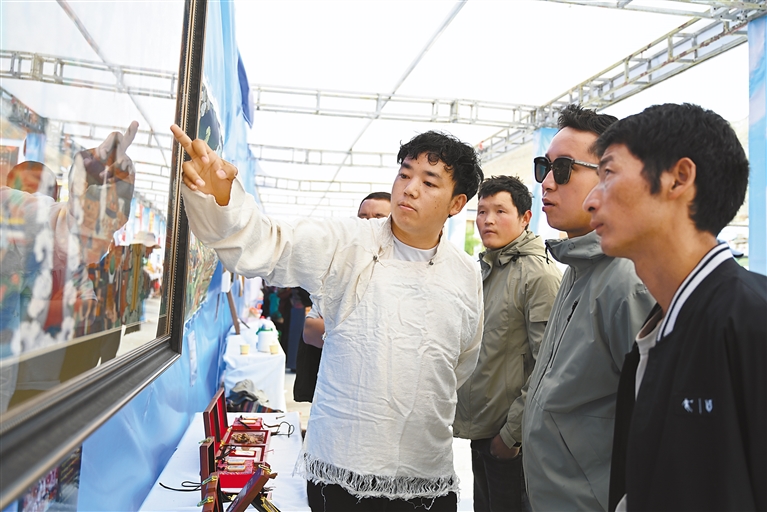 在欣賞視聽盛宴的同時,國家級非遺項目江孜卡墊織造技藝、自治區(qū)級非遺項目牛村陶器制作技藝、市級非遺項目恰哇編織技藝等50個非遺項目,以及民族手工業(yè)產(chǎn)品、南木林縣縣級非遺產(chǎn)品集中展覽展銷,備受消費者青睞。各非遺產(chǎn)品展銷點收入不斷、訂單不斷,經(jīng)初步統(tǒng)計,活動現(xiàn)場非遺產(chǎn)品銷售總額達(dá)45萬余元。