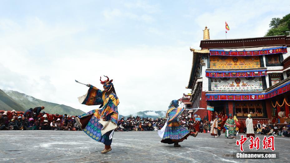近日,西藏自治區(qū)拉薩市墨竹工卡縣直孔替寺舉行中國國家級非物質(zhì)文化遺產(chǎn)直孔嘎爾羌姆(跳神)活動(dòng)。直孔嘎爾羌姆是藏傳佛教重要的宗教舞蹈藝術(shù)形式,“嘎爾”意為“樂舞”。其表演具有規(guī)范化的舞蹈動(dòng)作、獨(dú)特的伴奏音樂和完整的儀軌流程。圖為西藏拉薩市墨竹工卡縣直孔替寺僧人們佩戴面具參加跳神活動(dòng)。
