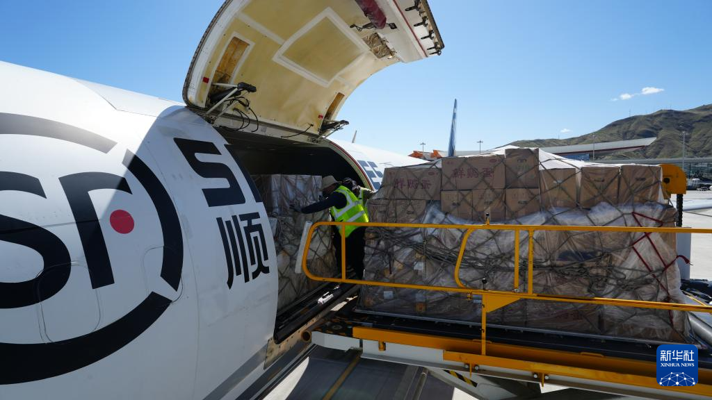 7月10日12點(diǎn)10分,一架載著西藏山南市瓊結(jié)縣小西紅柿、宏農(nóng)藏雞蛋,扎囊縣菜籽油、青稞等農(nóng)特產(chǎn)品的順豐全貨機(jī)從拉薩貢嘎國際機(jī)場(chǎng)起飛,前往湖北省鄂州市,這標(biāo)志著西藏首條貨機(jī)定期航線正式開通。一條連接西藏與華中地區(qū)的“空中金橋”由此貫通。