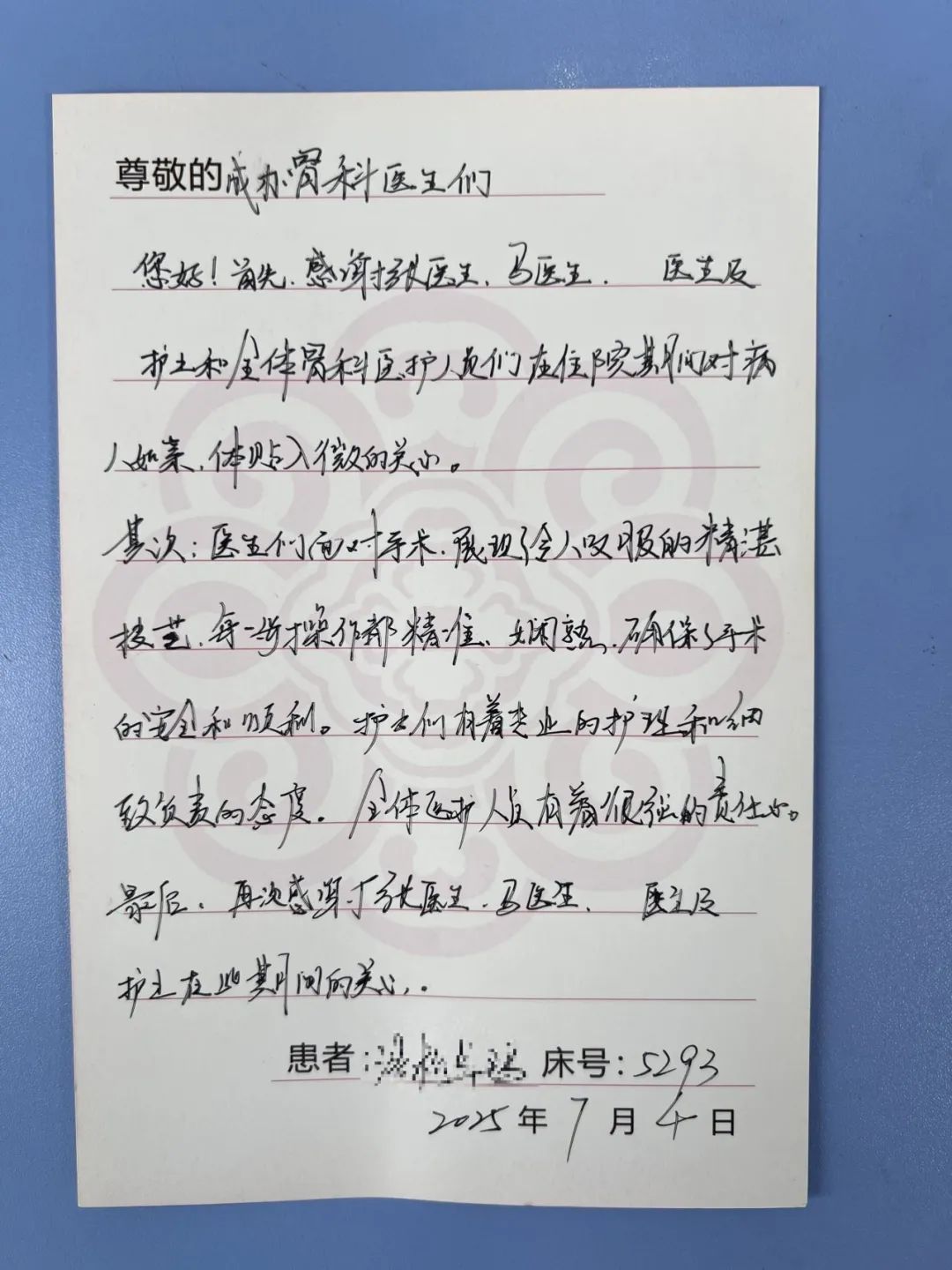 術(shù)后卓瑪阿媽恢復(fù)迅速,第二天就能下地自行活動。卓瑪阿媽及家屬對治療效果非常滿意,特意手書感謝信。