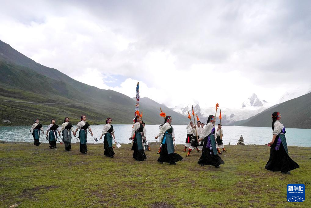 西藏那曲市比如縣藝術團的演員在薩普雪山景區(qū)為游客表演(7月19日攝)。新華社記者 晉美多吉 攝
