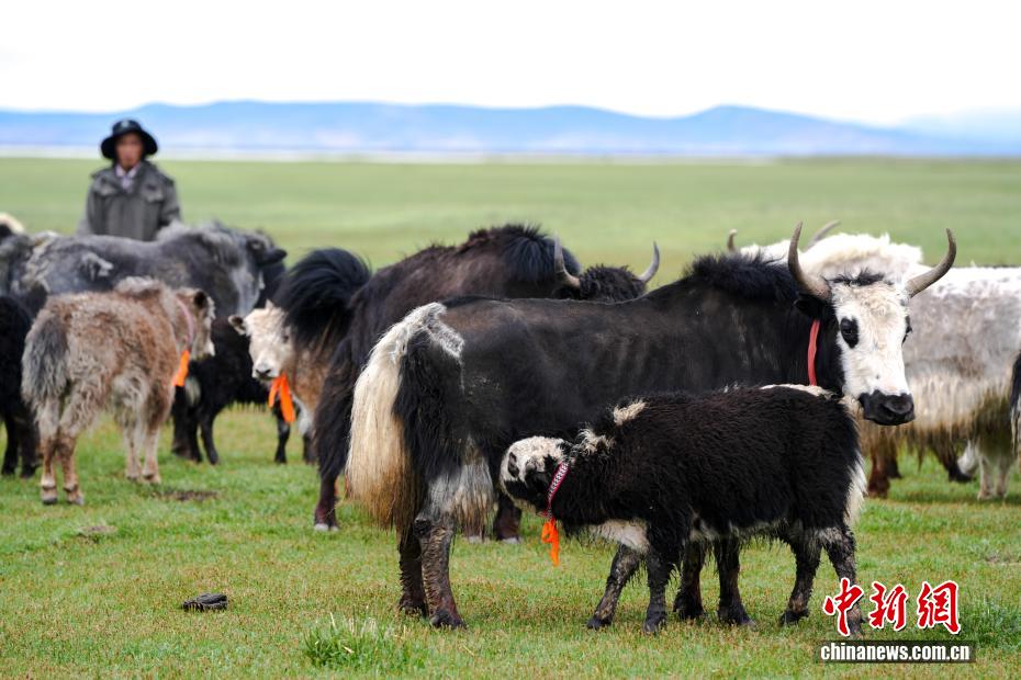 7月22日,在西藏阿里地區(qū)普蘭縣霍爾鄉(xiāng)瑪旁雍錯濕地,一頭牦牛在喂養(yǎng)牛犢。為實現(xiàn)更大的經(jīng)濟效益,霍爾鄉(xiāng)近年來探索建立牦牛養(yǎng)殖專業(yè)合作社,按當?shù)刈匀粭l件合理分配牦牛放牧地點,并將牛奶進行加工銷售,2023年該合作社的年總收入達到60余萬元人民幣,帶動牧民人均增收2萬余元人民幣。中新社記者 張祥毅 攝