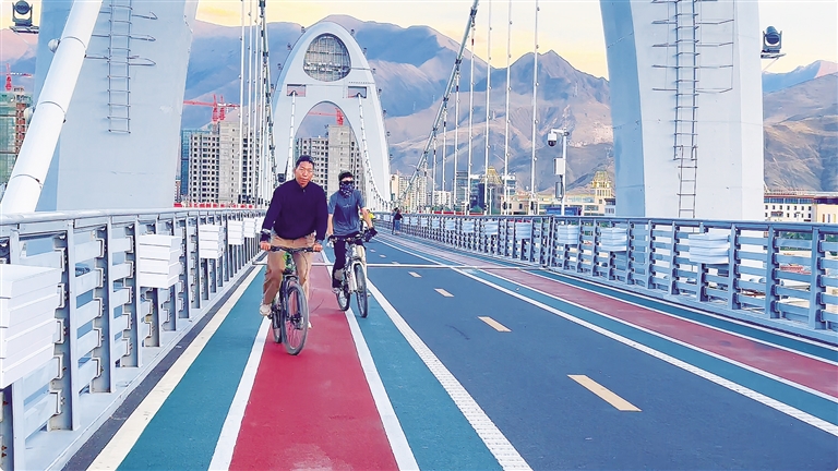 拉薩河畔的公園“綠色騎行帶”,已成為城市休閑健身的亮眼新地標(biāo)。這條綠色廊道沿河岸蜿蜒延伸,將沿線多個(gè)生態(tài)公園與地標(biāo)景點(diǎn)串聯(lián)成線,其中橫跨河面的“和美橋” 以現(xiàn)代藏式風(fēng)格的獨(dú)特設(shè)計(jì)格外吸睛,成為騎行愛好者爭相打卡的網(wǎng)紅地。