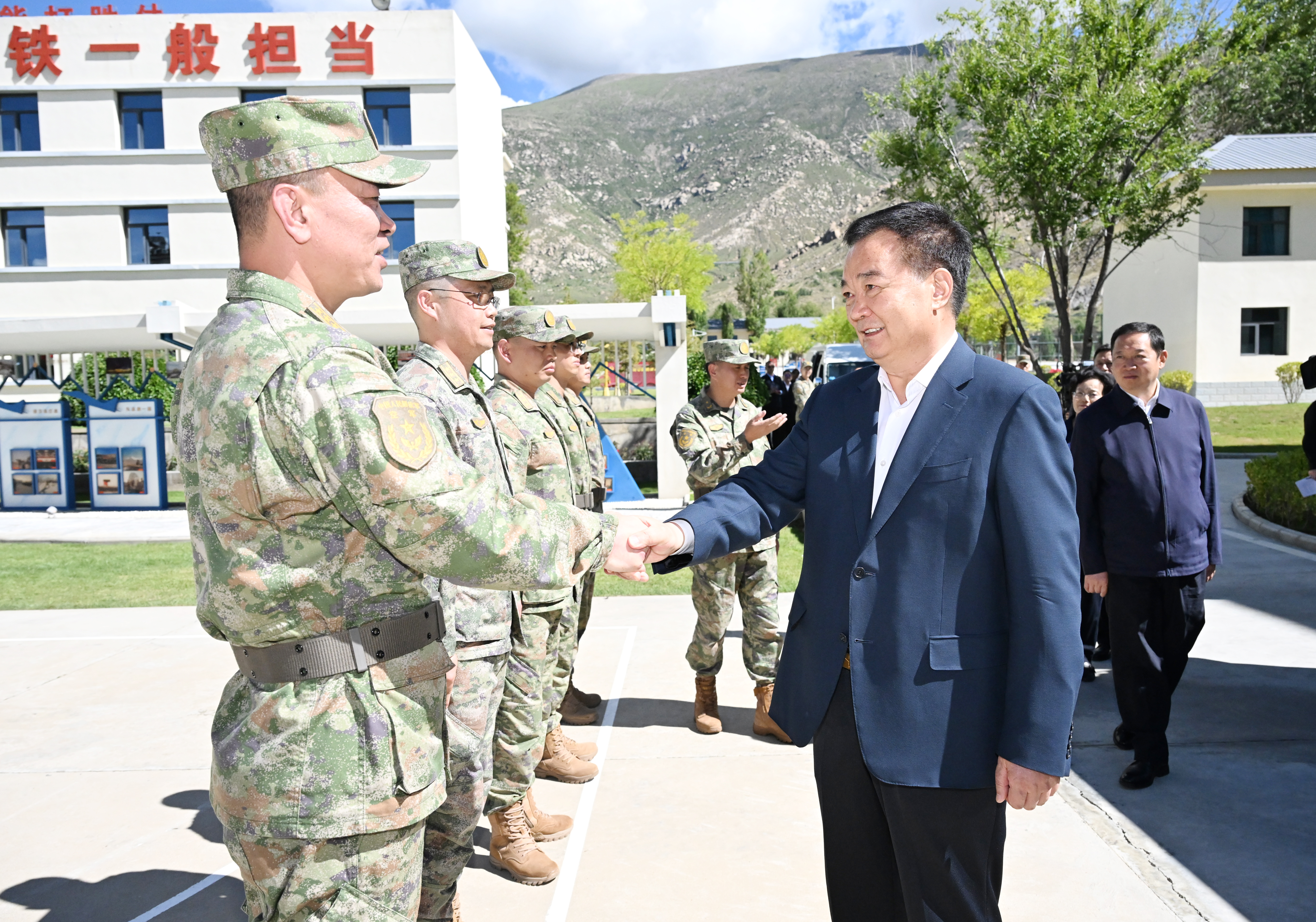 八一建軍節(jié)來臨之際,7月31日,自治區(qū)黨委書記、西藏軍區(qū)黨委第一書記王君正在拉薩看望慰問駐藏部隊官兵,代表自治區(qū)黨委、政府向全區(qū)廣大駐藏人民解放軍指戰(zhàn)員、武警部隊官兵、民兵預(yù)備役人員和退役軍人致以節(jié)日祝賀。