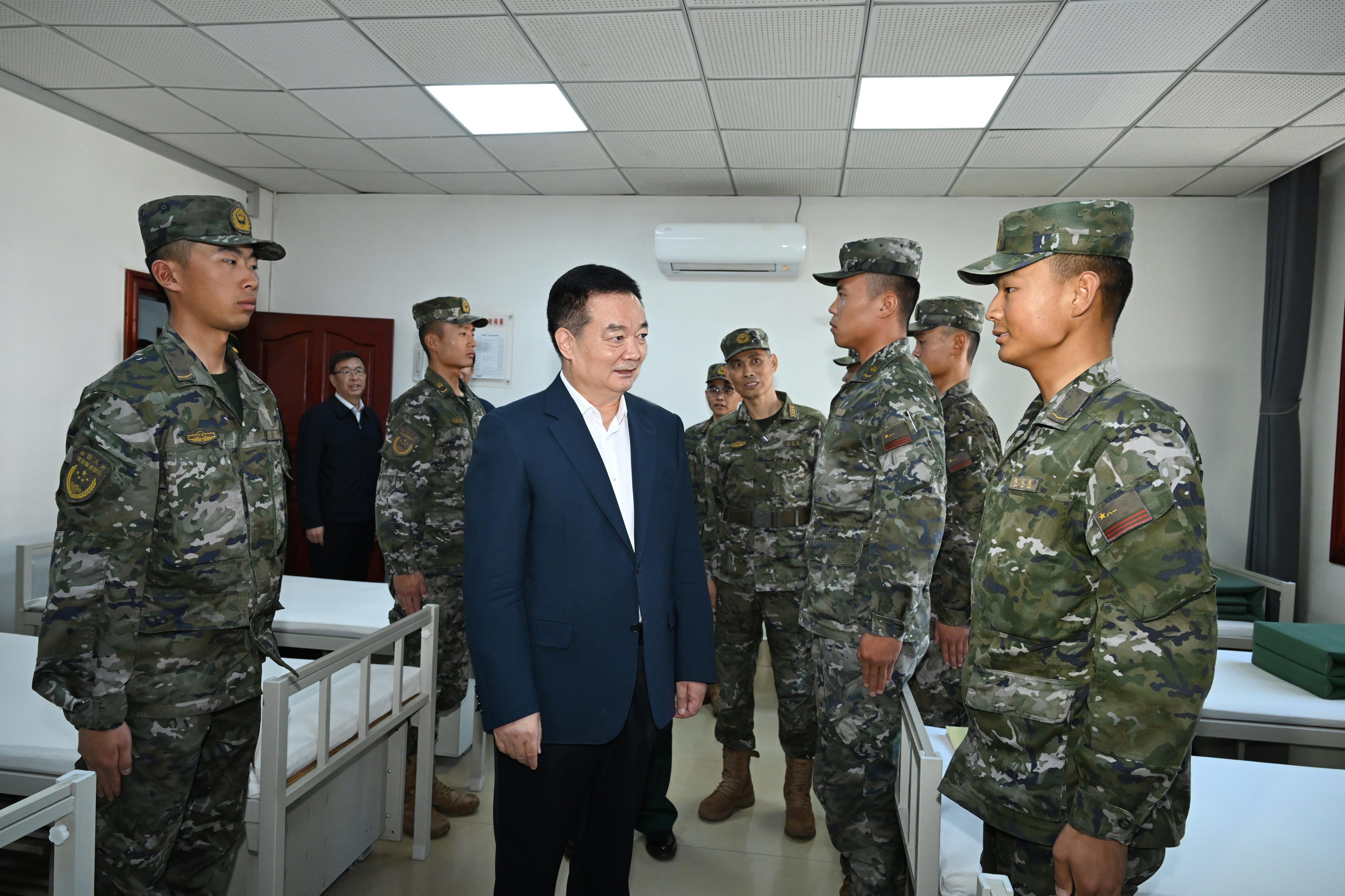 八一建軍節(jié)來臨之際,7月31日,自治區(qū)黨委書記、西藏軍區(qū)黨委第一書記王君正在拉薩看望慰問駐藏部隊官兵。這是王君正在武警西藏總隊某中隊了解官兵生活情況。記者 李洲 攝