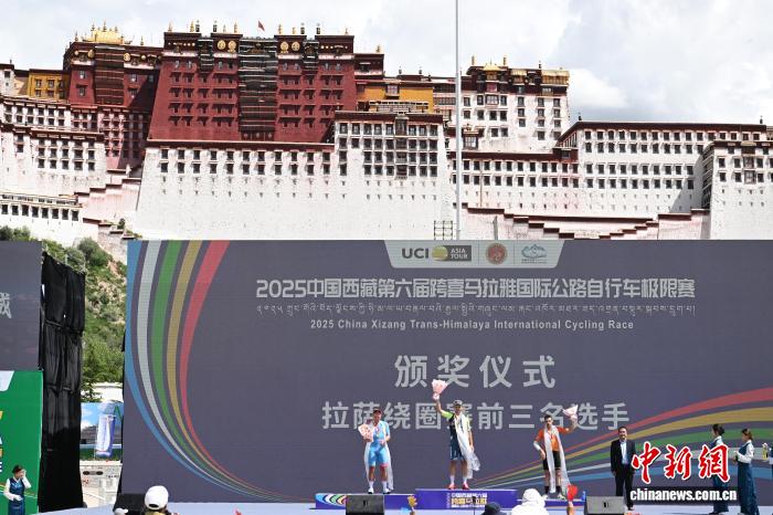 8月9日,2025中國西藏第六屆跨喜馬拉雅國際公路自行車極限賽拉薩賽段(第三賽段)完賽。本賽段為拉薩繞圈賽,起點(diǎn)拉薩市西藏博物館,終點(diǎn)布達(dá)拉宮廣場,全程約92.53公里。比賽吸引了來自中國、西班牙、哈薩克斯坦等20余支車隊。圖為斯優(yōu)泰-梵蒂尼職業(yè)隊 RAJOVIC Dusan(中)、快客洲際隊 LAAS Martin(左)、巴斯克電信職業(yè)隊 ABERASTURI IZAGA Jon(右)分別獲得本賽段第一、二、三名。中新社記者 貢嘎來松 攝