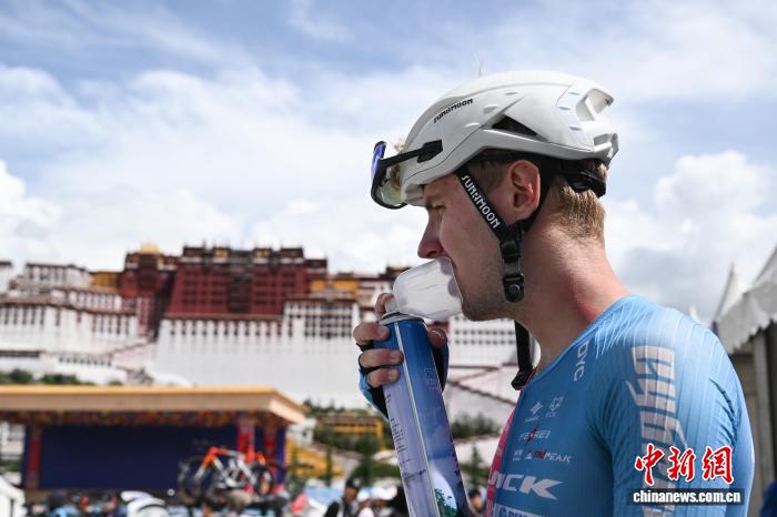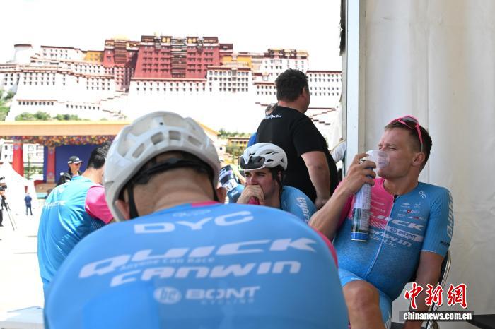 圖為完賽后參賽車手在布達(dá)拉宮廣場吸氧。中新社記者 貢嘎來松 攝