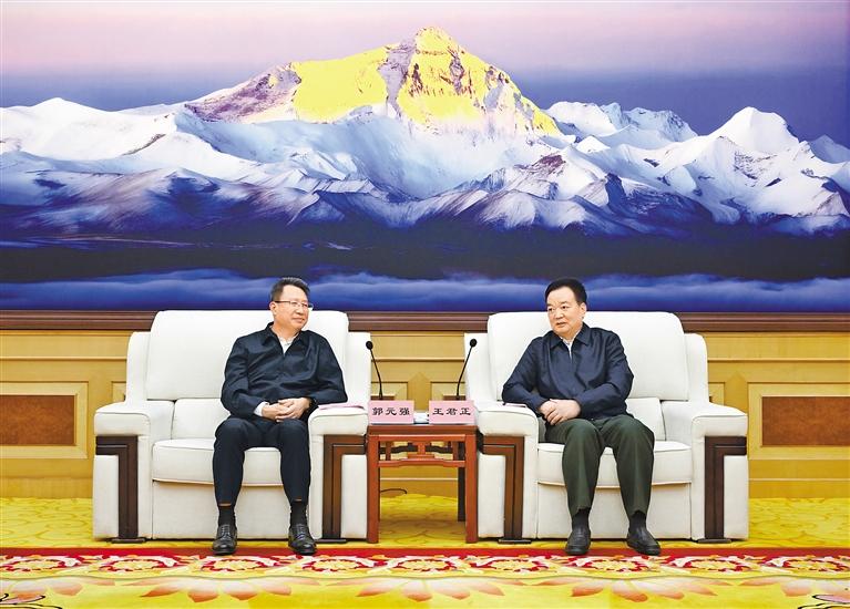 王君正代表自治區(qū)黨委、政府向郭元強(qiáng)一行表示歡迎,并簡要介紹了西藏經(jīng)濟(jì)社會(huì)發(fā)展情況。他說,黨的十八大以來,以習(xí)近平同志為核心的黨中央高度重視西藏工作,習(xí)近平總書記多次作出重要指示批示,確立了新時(shí)代黨的治藏方略,明確了“穩(wěn)定、發(fā)展、生態(tài)、強(qiáng)邊”四件大事,提出了長治久安和高質(zhì)量發(fā)展的戰(zhàn)略目標(biāo),為我們做好西藏工作指明了前進(jìn)方向、提供了根本遵循。自治區(qū)黨委團(tuán)結(jié)帶領(lǐng)全區(qū)各族干部群眾,深入貫徹習(xí)近平總書記關(guān)于西藏工作的重要指示和新時(shí)代黨的治藏方略,持之以恒抓好“四件大事”落實(shí),推動(dòng)各項(xiàng)事業(yè)不斷取得新成效。
