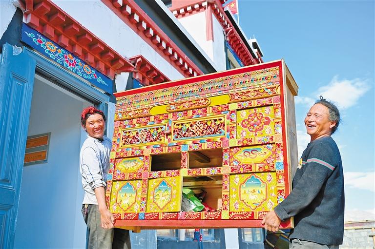 定結(jié)縣野江村村民往新居里搬家具。記者 平措次仁 攝
