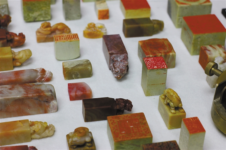 徐帥用于篆刻創(chuàng)作的各類印石材料。
