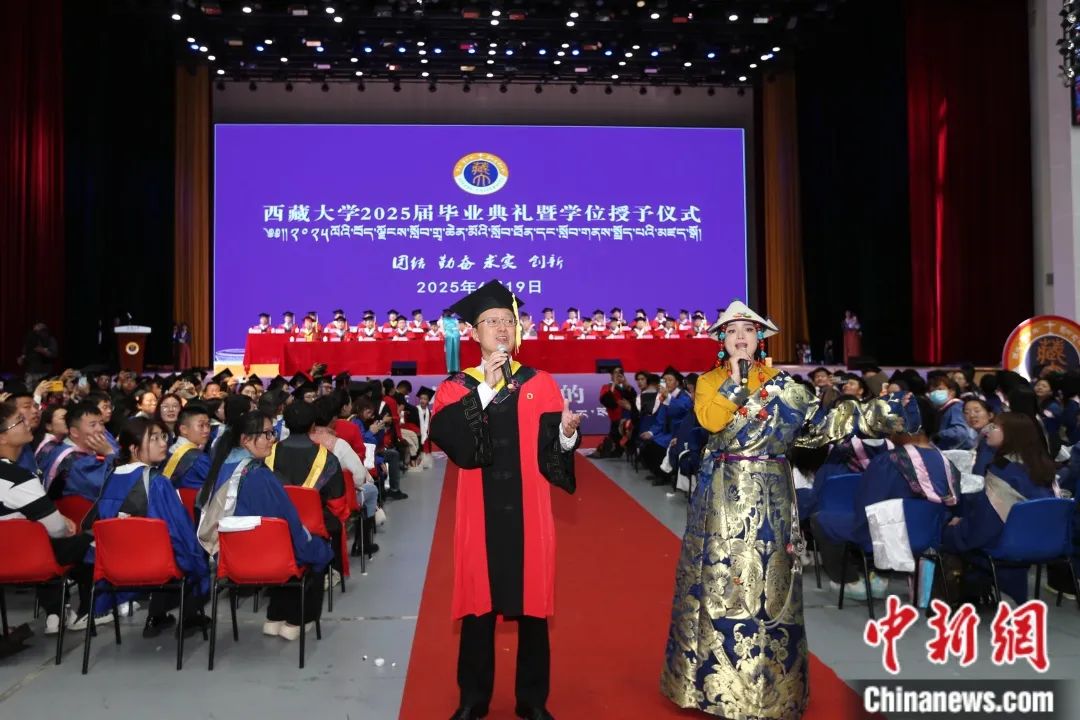 圖為在西藏大學(xué)畢業(yè)典禮上師生合唱《珠穆朗瑪》。西藏大學(xué)供圖