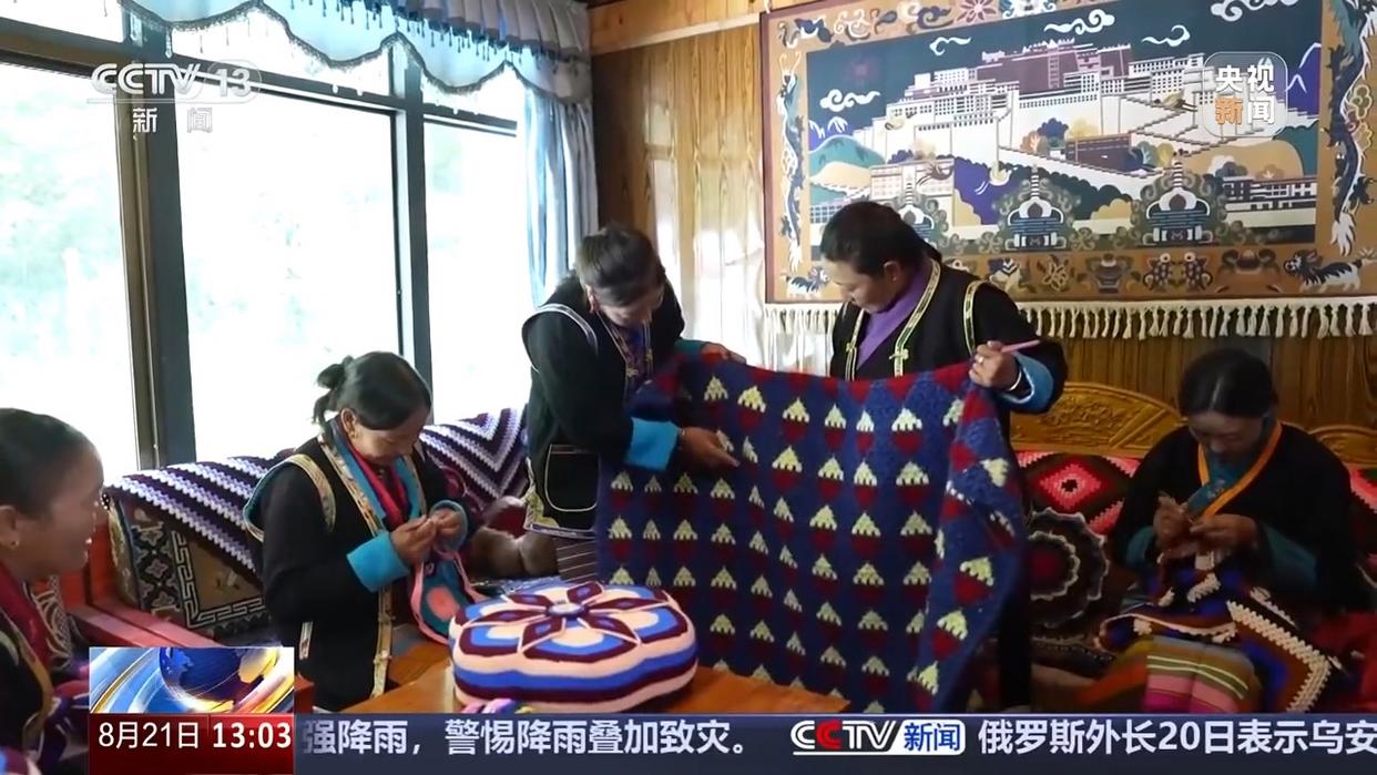 西藏自治區(qū)山南市隆子縣珞瓦新村村民 次仁卓瑪:今年以來,我們已經(jīng)賣出了50多條毛毯,100多個靠枕,其中一半是通過網(wǎng)絡(luò)直播賣出的。