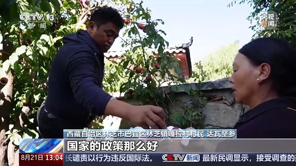 西藏自治區(qū)林芝市巴宜區(qū)林芝鎮(zhèn)嘎拉村村民 達(dá)瓦堅參:我對現(xiàn)在的生活很滿意,國家的政策那么好。教育上面,孩子從幼兒園開始都是“三包”(包吃、包住、包基本學(xué)習(xí)用品)政策,看病90%可以刷醫(yī)保。