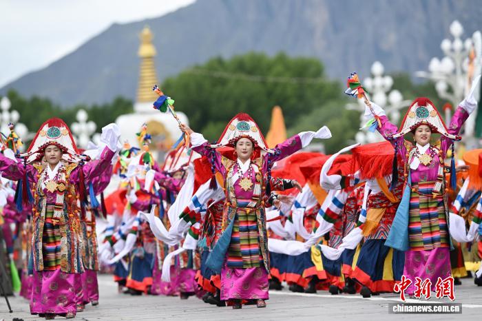 8月21日,西藏自治區(qū)成立60周年慶祝大會(huì)中的游行表演。貢嘎來松 攝