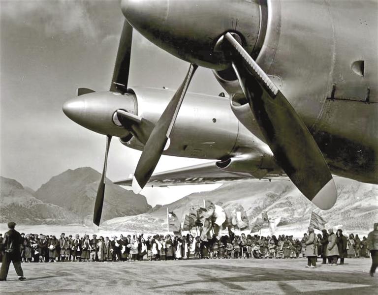 無(wú)畏開(kāi)拓,筑起雪域天路。1955年底,黨中央、國(guó)務(wù)院作出開(kāi)辟北京至拉薩民用航線的重要指示。1956年4月26日,當(dāng)雄草原上建起了簡(jiǎn)易跑道;5月26日,韓琳機(jī)組駕駛伊爾-12型飛機(jī)從北線試航,穿破層層云障,成功降落在雪山環(huán)抱的當(dāng)雄機(jī)場(chǎng),填補(bǔ)了我國(guó)高高原飛行的空白;9月5日,歷時(shí)118天,西藏第一座機(jī)場(chǎng)——當(dāng)雄機(jī)場(chǎng)建成。此后的10年間,多次組織試飛。1965年3月1日,民航第一飛行大隊(duì)孫權(quán)貴和畢春芳機(jī)組駕駛伊爾-18型飛機(jī)從北京起飛,次日平穩(wěn)降落當(dāng)雄機(jī)場(chǎng),北京-成都-拉薩航線正式通航,西藏民航波瀾壯闊的發(fā)展篇章就此開(kāi)啟。