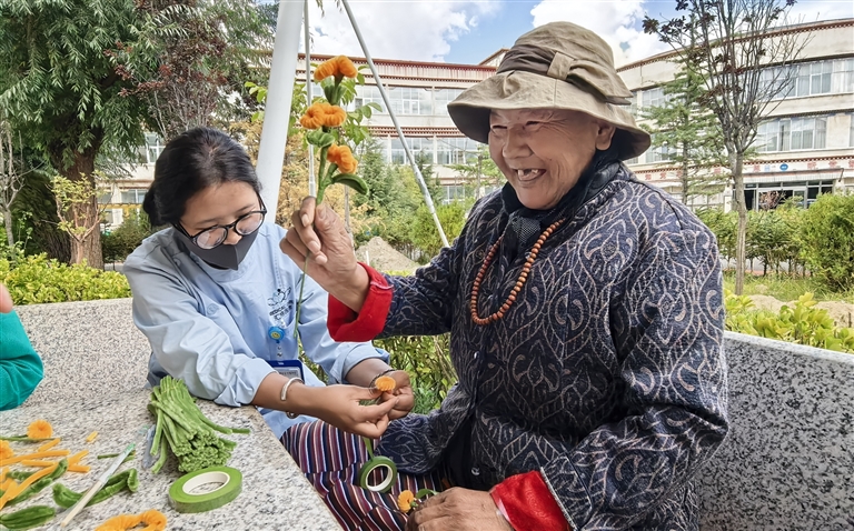 此外,為提升老人們的幸福感,每逢重大節(jié)日,拉薩市社會(huì)福利院都會(huì)舉辦豐富多彩的文藝演出?!懊磕晡覀兣e辦大大小小的活動(dòng)不少于200次,前幾天我們就在宗角祿康公園舉辦‘紅歌嘹亮頌黨恩,銀齡歌舞展風(fēng)采’活動(dòng),老人們通過(guò)紅歌聯(lián)唱、手工展示等形式,展現(xiàn)了他們積極向上的精神風(fēng)貌。”扎西頓珠表示,拉薩市社會(huì)福利院通過(guò)整合資源、創(chuàng)新服務(wù),開(kāi)展的各類(lèi)文化活動(dòng)有效豐富了老年人的精神文化生活,滿足了老年人對(duì)養(yǎng)老院生活品質(zhì)的需求。