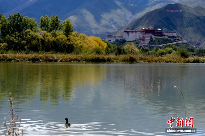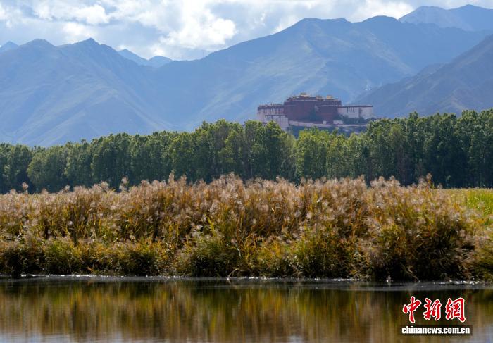 9月4日,初秋時節(jié)的西藏拉薩市拉魯濕地國家級自然保護(hù)區(qū)秋意漸濃、景色如畫。藍(lán)天白云下,草木黃綠、水鳥嬉戲,與遠(yuǎn)處的城市建筑共同構(gòu)成一幅美麗的生態(tài)畫卷。中新社記者 李林 攝