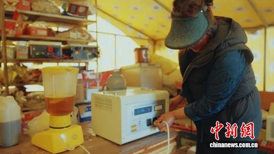 牧民使用“移動式光儲一體微電站”制作酥油茶。毛一豐 供圖