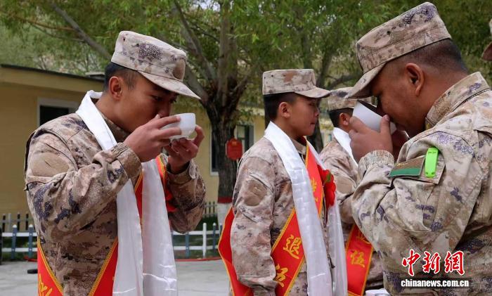 西藏阿里軍分區(qū)某邊防團(tuán)什布奇邊防連9月4日為十余名服役期滿(mǎn)退役的老兵舉行歡送儀式。