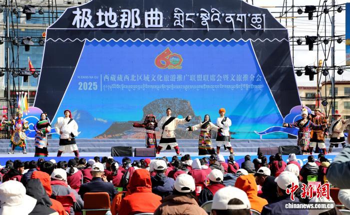 圖為西藏藏西北區(qū)域文化旅游推廣聯(lián)盟聯(lián)席會(huì)暨文旅推介會(huì)活動(dòng)現(xiàn)場文藝演出。那曲市文化和旅游局供圖