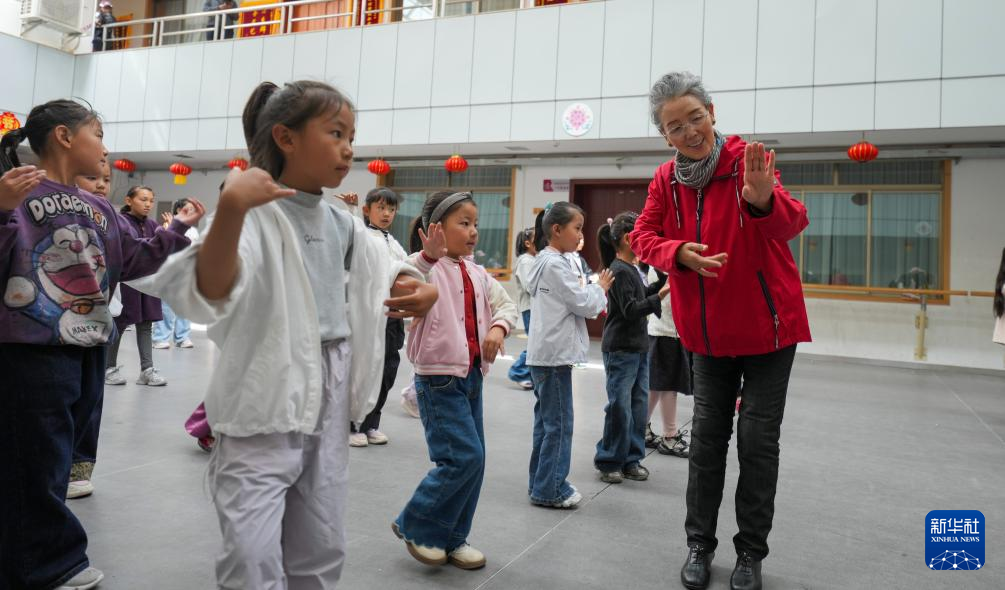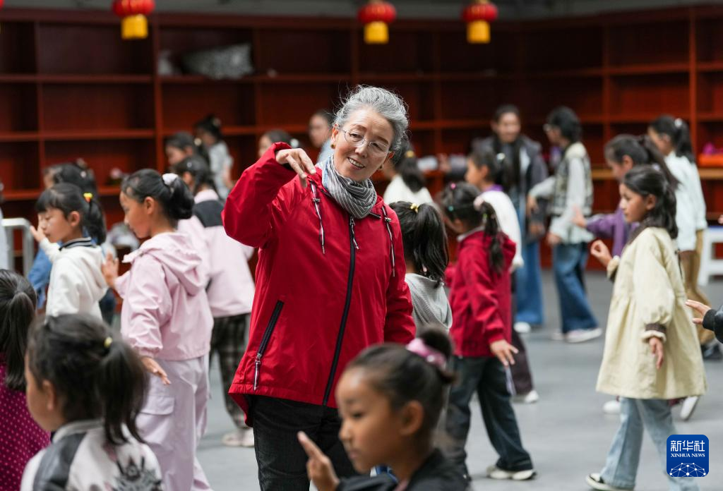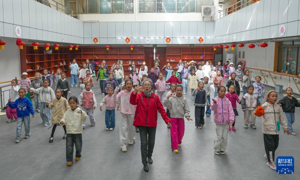 9月14日,巴桑老師在西藏自治區(qū)群藝館帶領(lǐng)孩子們學(xué)習(xí)藏戲表演。新華社記者 晉美多吉 攝