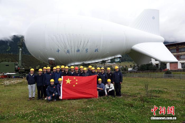 9月18日下午,“極目一號(hào)”浮空艇大氣觀測(cè)試驗(yàn)完成任務(wù)前相關(guān)測(cè)試工作,項(xiàng)目團(tuán)隊(duì)代表在現(xiàn)場(chǎng)合影。中新網(wǎng)記者 孫自法 攝