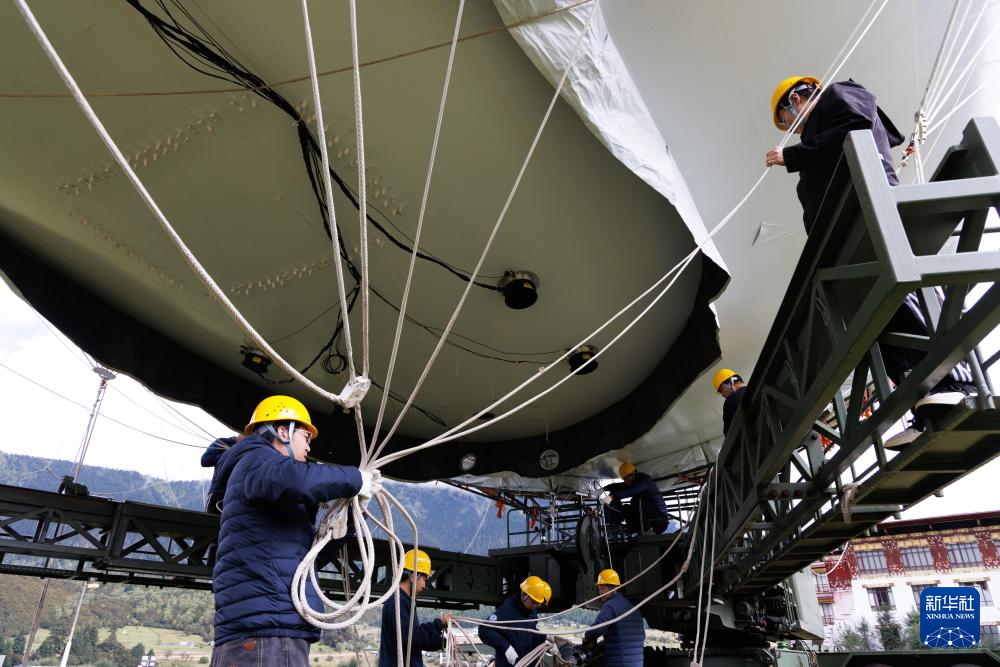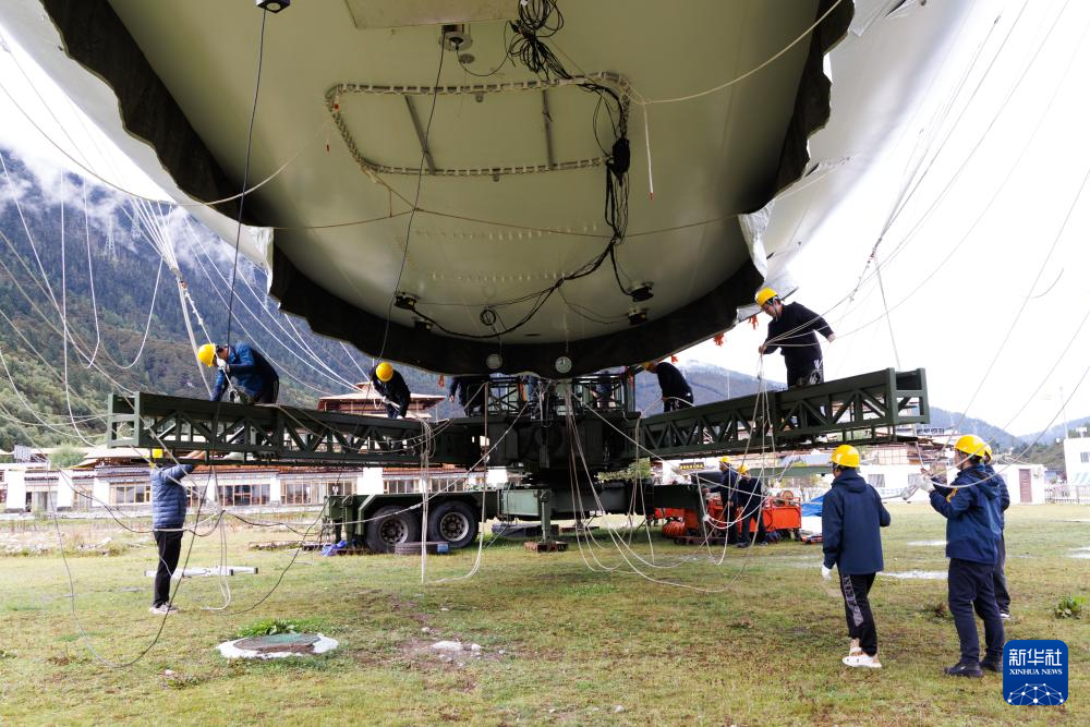 9月18日,極目一號”浮空艇大氣觀測試驗現場,科研人員在調試觀測載荷。新華社記者 金立旺 攝