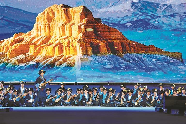 開幕式通過“線上直播+現(xiàn)場觀演”模式,為現(xiàn)場各界來賓、干部群眾及線上觀眾,呈現(xiàn)了一場內(nèi)容豐富、形式多元、內(nèi)涵深刻的視聽盛宴。此次演出時(shí)長約80分鐘,投入演職人員300余人次,共呈現(xiàn)13個(gè)特色節(jié)目。演出以弘揚(yáng)優(yōu)秀傳統(tǒng)文化和鑄牢中華民族共同體意識為基調(diào),大膽革新藝術(shù)表達(dá)形式,將“音、舞、詩、畫”巧妙融合,并鑲嵌濃郁的阿里地域文化元素,通過多元文化交融的舞臺敘事,生動詮釋中華民族“多元一體、和諧共生”的深刻內(nèi)涵,實(shí)現(xiàn)歷史與人文的激情碰撞。