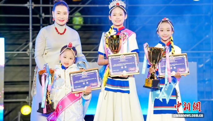 圖為“熱巴皇后”澤吉為第三屆“塔耶梅朵熱巴精靈”大賽冠亞季軍頒獎(jiǎng)并合影。西藏自治區(qū)文化和旅游廳 供圖