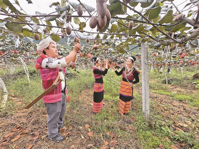不僅如此,企業(yè)還定期請來農(nóng)業(yè)專家培訓(xùn),向村民傳授標(biāo)準(zhǔn)化種植技術(shù)。走進(jìn)獼猴桃種植基地,正在疏果的村民依青向記者展示新學(xué)的技術(shù):“每株保留2到3個果最好,這樣成熟后的果子果形大、甜度高,價格自然也高?!彼胰ツ旮貙W(xué)種植,8畝獼猴桃收入5萬多元。以前只會種玉米的她,現(xiàn)在已經(jīng)成了村里的技術(shù)能手。