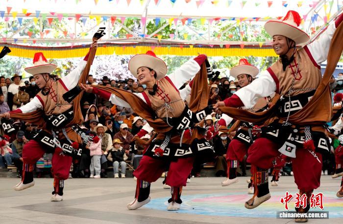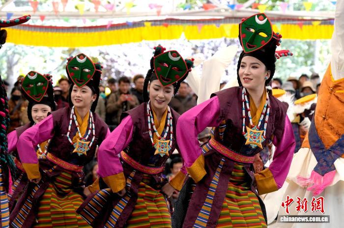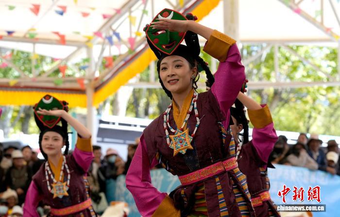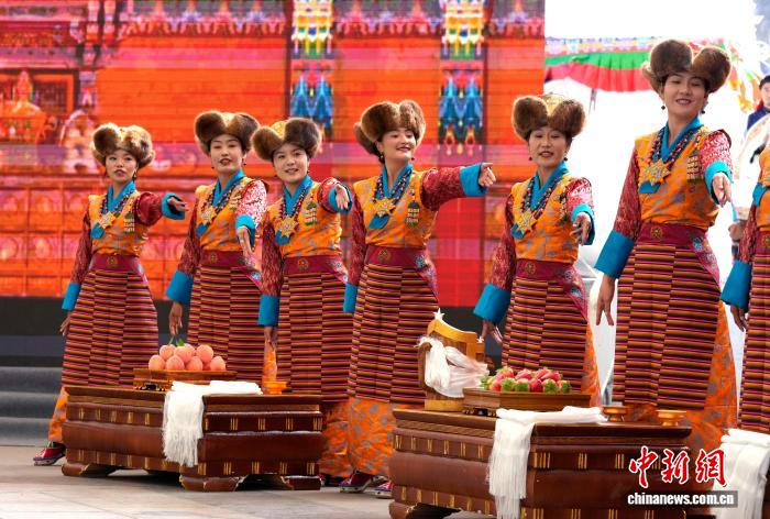 10月19日,“格桑花杯”拉薩市第六屆縣(區(qū))藝術(shù)團(tuán)文藝調(diào)演頒獎活動在布達(dá)拉宮腳下的宗角祿康公園舉行?,F(xiàn)場,拉薩市各縣(區(qū))藝術(shù)團(tuán)帶來精彩節(jié)目。圖為文藝調(diào)演頒獎活動上的文藝表演。中新社記者 李林 攝