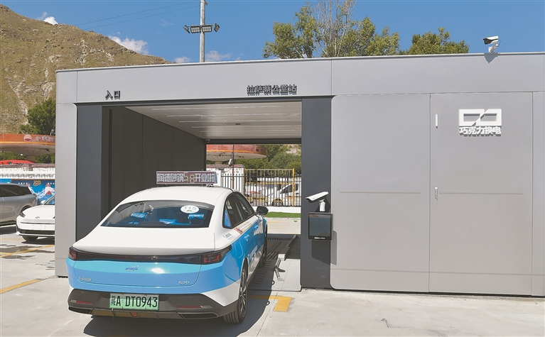 圖為拉薩市首批換電新能源出租車在換電。記者 白瑪澤旺 唐斌 攝