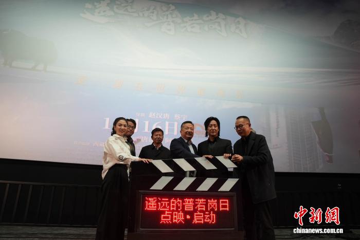 圖為電影《遙遠的普若崗日》拉薩點映啟動儀式現(xiàn)場。貢確 攝