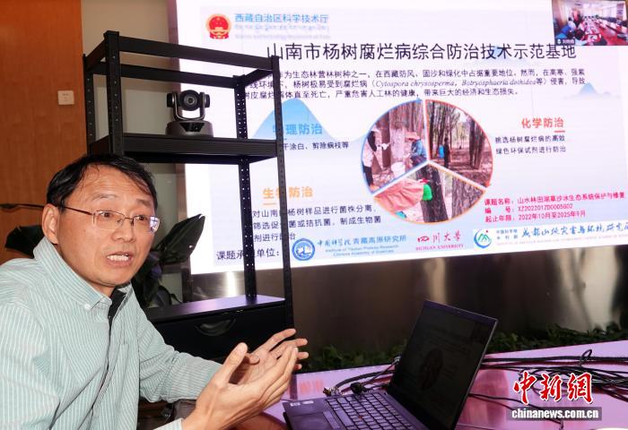 張更新研究員介紹青藏高原楊樹病害防治研究進展。中新網(wǎng)記者 孫自法 攝