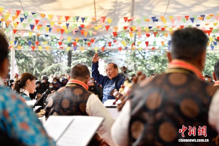 圖為群眾音樂會,民樂合奏《我的家鄉(xiāng)好》精彩上演。中新社記者 貢嘎來松 攝