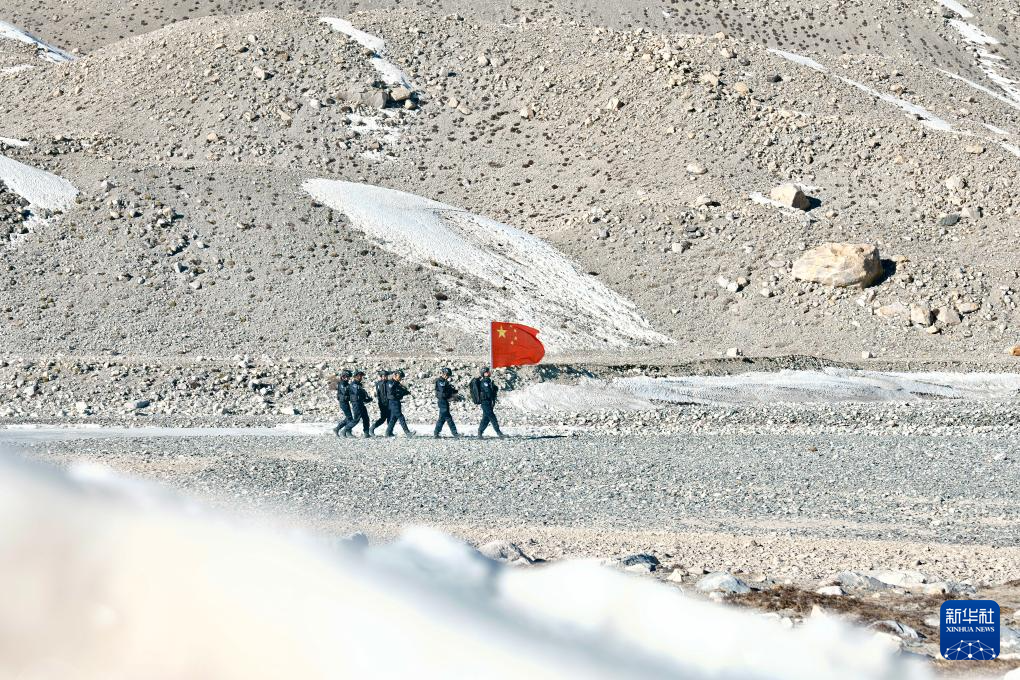 第一次走在巡邏線上,低溫與缺氧使他們呼吸變得急促。風(fēng)一陣陣掠過山谷,帶來刺骨的冷意。他們互相鼓勵,“慢一點(diǎn)、穩(wěn)一點(diǎn)”。在雪峰前抬頭仰望,震撼與敬畏撲面而來,也讓他們更真切地體會到“守在這里”的分量。