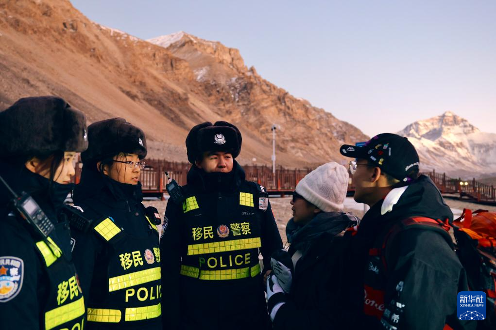 珠峰邊境派出所的移民管理警察在珠峰核心區(qū)巡邏(12月24日攝)。新華社記者 周昱龍 攝