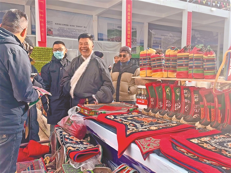 走進(jìn)展銷(xiāo)會(huì)現(xiàn)場(chǎng),最直觀的感受就是品類(lèi)全、品質(zhì)好,藏北特色撲面而來(lái)。全市11個(gè)縣(區(qū))的1485家參展商齊聚于此,帶來(lái)100余種高原特色產(chǎn)品,把草原上的好東西都搬到了消費(fèi)者面前。特色畜產(chǎn)品是當(dāng)之無(wú)愧的消費(fèi)“主力軍”,“那曲牦牛”地理標(biāo)志產(chǎn)品、嘎?tīng)柕碌葏^(qū)域品牌,憑借“云端牧場(chǎng)、黃金奶源”的獨(dú)特品質(zhì),一亮相就成了爆款,不少市民圍著展臺(tái)詢(xún)價(jià)選購(gòu)。