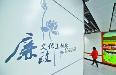 長沙地鐵一號線省政府·清風(fēng)站出入通道內(nèi)的廉政文化主題宣傳畫。新華社發(fā)