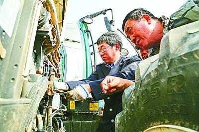 春季備耕時(shí)節(jié),山東省濱州市沾化區(qū)農(nóng)機(jī)部門組織“黨員農(nóng)機(jī)服務(wù)隊(duì)”到田間地頭為群眾服務(wù)。圖為3月27日,該區(qū)“黨員農(nóng)機(jī)服務(wù)隊(duì)”成員李成林(左一)在為群眾搶修拖拉機(jī)。賈海寧攝/光明圖片