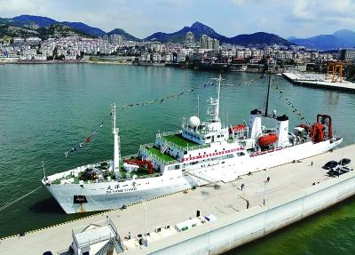 7月31日,在山東省青島市國家海洋局北海分局科考基地碼頭,“大洋一號”科考船準(zhǔn)備起航執(zhí)行中國大洋48航次科學(xué)考察任務(wù)。新華社記者 李紫恒攝