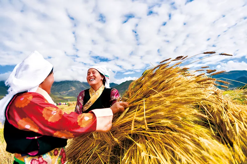 經(jīng)黨中央批準(zhǔn)、國務(wù)院批復(fù),自2018年起,將每年農(nóng)歷秋分設(shè)立為中國農(nóng)民豐收節(jié),這是第一個在國家層面為農(nóng)民設(shè)立的節(jié)日,進(jìn)一步彰顯了“三農(nóng)”工作重中之重的基礎(chǔ)地位。 圖為2018年9月23日,首個中國農(nóng)民豐收節(jié),拉薩市林周縣松盤鄉(xiāng)松盤村兩名藏族農(nóng)民在田間。 新華社記者 覺果/攝