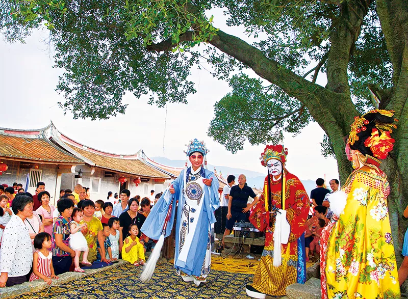 福建省龍海市東園鎮(zhèn)埭美村是閩南紅磚建筑文化的杰出代表,被稱為“水上古村落”。近年來,當(dāng)?shù)卮罅嵤┼l(xiāng)村振興戰(zhàn)略,對環(huán)境進(jìn)行整體改造提升,村容村貌煥然一新,鄉(xiāng)村文化發(fā)展繁榮。圖為2018年6月21日,一家薌劇團(tuán)在埭美村榕樹下表演傳統(tǒng)薌劇《貍貓換太子》,吸引眾多居民及游客。 新華社記者 姜克紅/攝