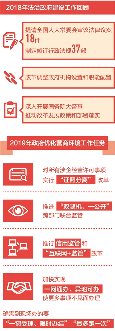 習(xí)近平總書記在黨的十九大報告中指出,要建設(shè)法治政府,推進(jìn)依法行政,嚴(yán)格規(guī)范公正文明執(zhí)法。政府工作報告中,許多法治關(guān)鍵詞折射出法治政府建設(shè)的堅實步伐。代表委員們認(rèn)為,依法行政、加強公正監(jiān)管、創(chuàng)新社會治理,為營造良好經(jīng)濟(jì)社會環(huán)境提供有力保障。