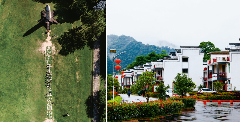 2018年7月29日,瑞金市率先在贛南脫貧摘帽,“共和國搖籃”在全面建成小康社會(huì)道路上邁出關(guān)鍵一步。左圖為2018年7月21日拍攝的江西瑞金市紅軍烈士紀(jì)念塔的鳥瞰圖(黃龍/攝)。右圖為2019年5月6日拍攝的華屋村新貌(新華社記者 蘭紅光/攝)。華屋村位于江西瑞金市葉坪鄉(xiāng),是遠(yuǎn)近聞名的“紅軍村”。