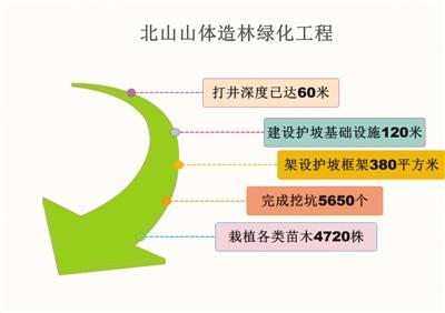 2017年,全市還完成補(bǔ)植補(bǔ)造各類(lèi)苗木3.8萬(wàn)余株,完成南山公園停車(chē)場(chǎng)兩側(cè)綠化,累計(jì)栽植雪松、云杉、刺槐等70000余株。完成總面積489畝的南山恰加山核心區(qū)水系工程、景觀工程、道路工程、圍欄工程等建設(shè)。
