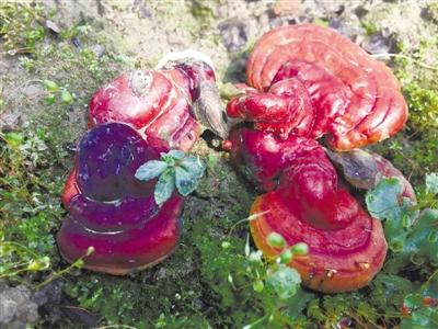 在這個(gè)培育房里,一排排貨架上整齊擺放著靈芝菌菌袋,如果仔細(xì)看,有的菌袋扎口處已經(jīng)冒出白色的菌絲。再經(jīng)過(guò)一段時(shí)間的發(fā)菌,就可以種植到地上使之繼續(xù)生長(zhǎng)了。而在稍遠(yuǎn)一點(diǎn)的一個(gè)大棚里,已經(jīng)種植到地里的菌袋正在陽(yáng)光和水汽的照拂下繼續(xù)生長(zhǎng)。程攀說(shuō):“因?yàn)檫@里晝夜溫差大,所以溫室大棚棚頂都要蒙上黑色遮光布,白天遮擋陽(yáng)光,保持適當(dāng)?shù)臏囟群蜐穸?,這樣才有利于靈芝菌的生長(zhǎng)?!?/p>